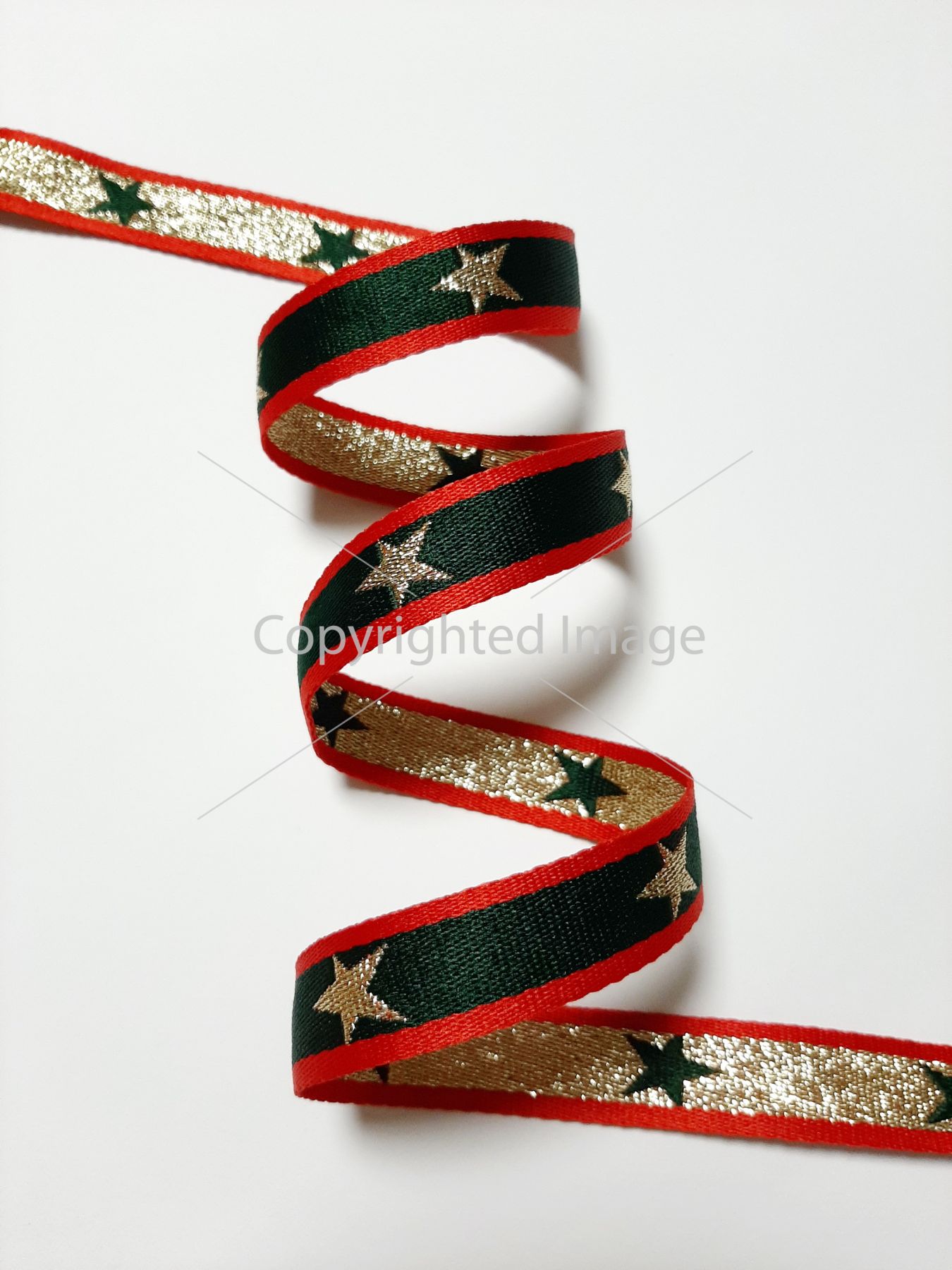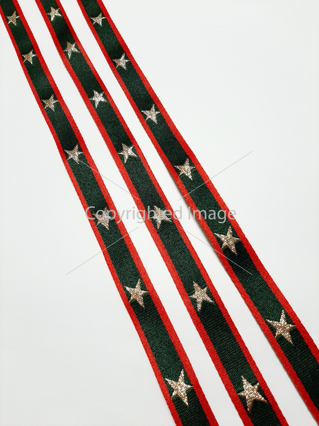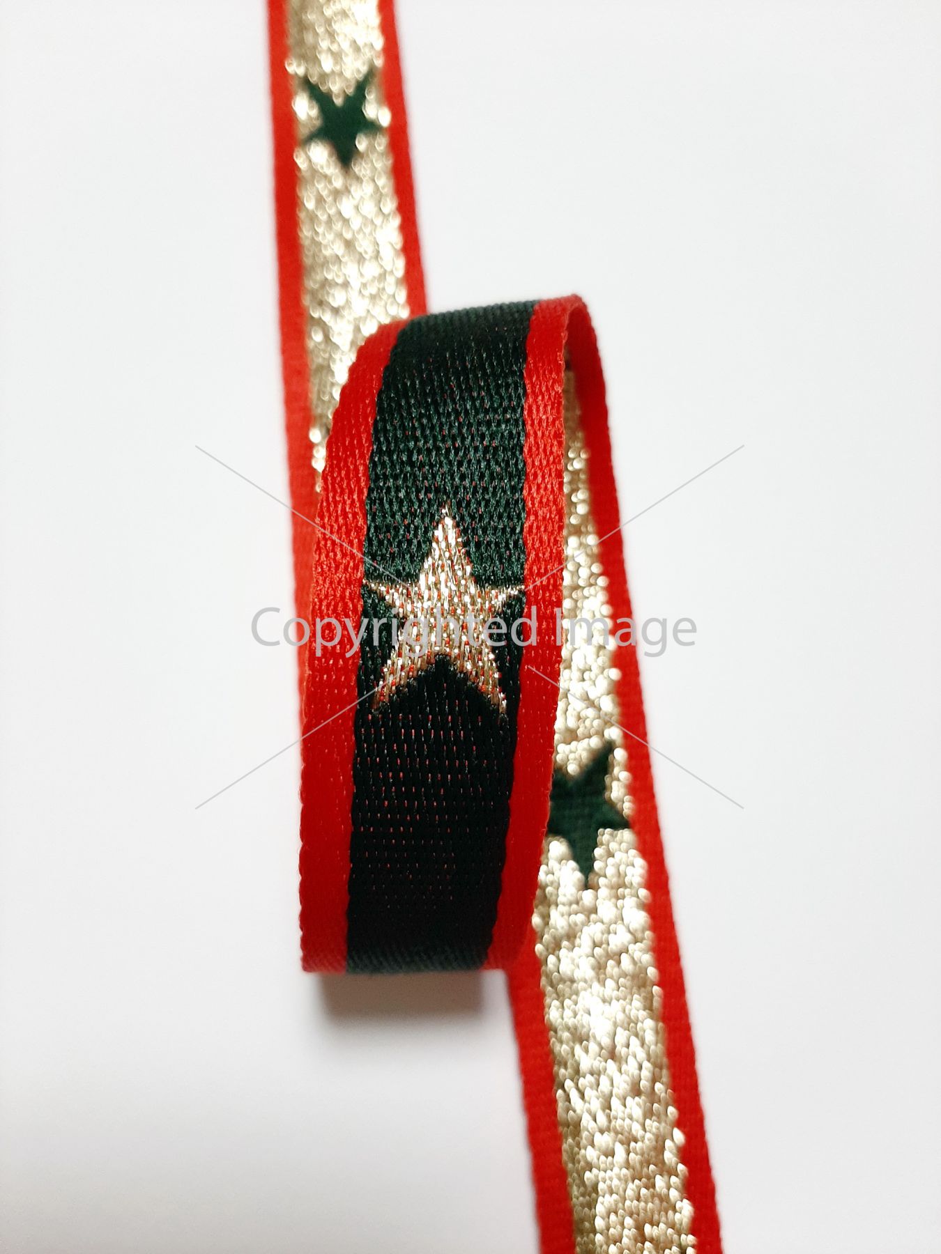 Тасьма-лампас 2см в смужку червон+зел+З зірки золото 50а репс